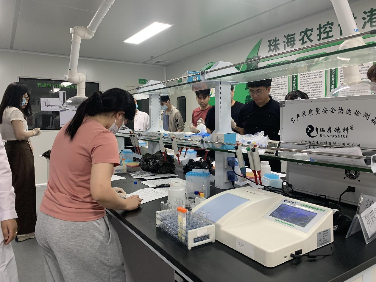 根据《2023年珠海市开展市场销售食用农产品快速检测工作方案》有关要求,为提高食用农产品快速检测操作技术水平,推进珠海市食用农产品快检工作的顺利开展,珠海市市场监督管理局于2023年5月18-19日在珠海市农产品物流与安全检测中心举办“珠海市2023 年食用农产品快速检测工作培训班”。珠海市市场监督管理局分管领导、珠海市各区负责食用农产品快检工作的基层监管人员、各区委托第三方检验机构派出人员,菜篮子配送平台、农贸市场及超市快检人员、华体会手机网页版登录入口相关领导及技术培训同事参与了本次培训班活动。