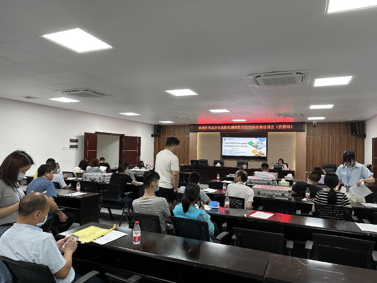 在本次培训活动中华体会手机网页版登录入口公司为南海区各镇街风险监测点所在单位检测人员提供了食用农产品安全检测知识、规章制度、操作流程及注意事项等相关内容的培训与考核,旨在进一步强化检测工作流程的规范化及结果准确性,全面提升各风险监测点检测人员的检测能力与水平,切实发挥他们“食品安全卫士”的角色重要性,严把各个领域食品安全质量关,共同为南海区广大民众食品安全提供保障。