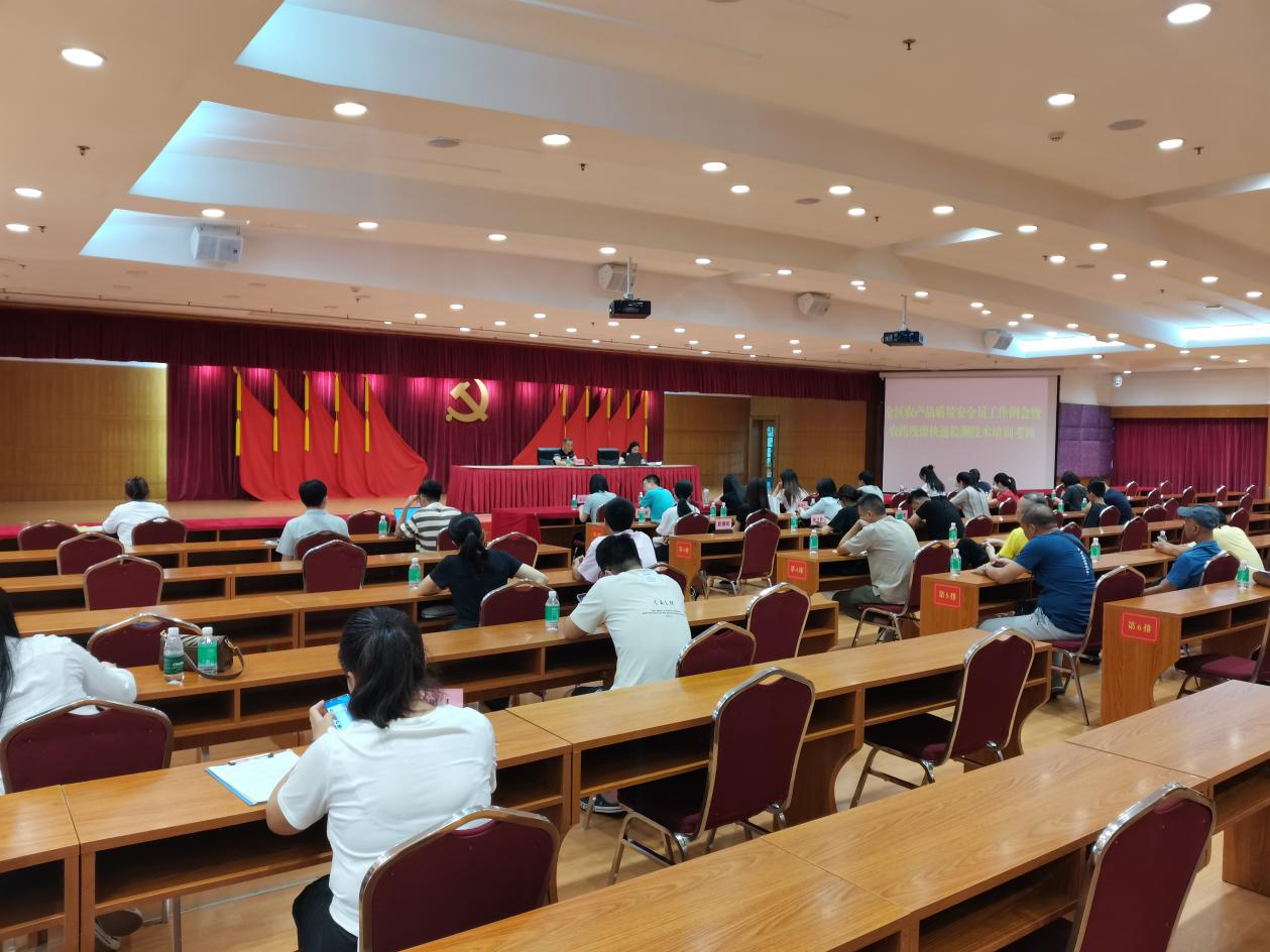 为强化广州市农产品质量安全监测体系建设,提升各级农产品质量安全监测机构的检测能力,切实保障产地农产品质量安全。2023年7月28日,”天河区农产品质量安全员工作例会暨农药残留快速检测技术培训考核会议“在天河区人民政府机关大院2号楼会议室召开。天河区农业农村局分管领导、全区各街道办全体专职农产品质量安全员及农业线口主要工作人员、全区各经济联社农业线口主要工作人员参与了本次培训会议。华体会手机网页版登录入口技术培训同事受邀为本次培训班所有参训人员就“食用农产品快检技术介绍”课题做了培训,并取得良好效果。